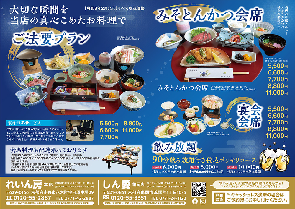 ご予約承っております。各店舗まで、お電話にてご連絡ください。